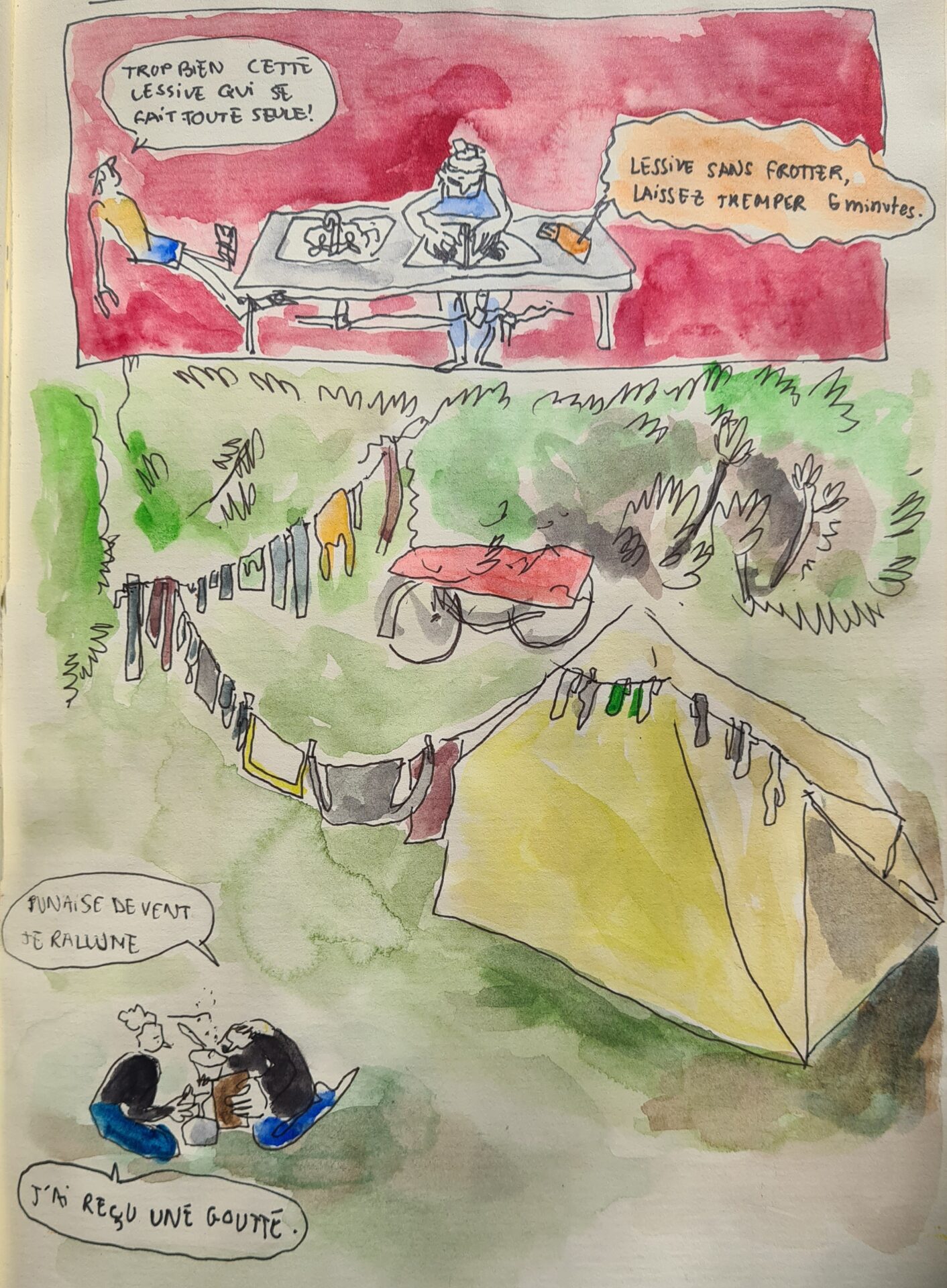 J’en ai fait deux le même été. Le premier sur l’île de Wight avec mon frère aîné. Mais nous étions si peu au point qu’il a fallu réparer nos vélos avant les premiers tours de pédale. Puis, avec Nolwenn, nous avons pris le train pour Amsterdam et fait le tour de l’immense lac d’Yssel, en Hollande. J’ai appris à faire du camping et la popote sur le réchaud et je dessinais à l’étape.